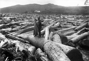 The first sawmills were established in the late 1830’s and soon there were numerous small mills cutting logs from the forests around the sheltered harbours of Northland, Auckland and the Coromandel Peninsula. These mills, powered by water wheels, and later steam, had far greater cutting capacity than the pit sawyers. Demand for timber continued to increase, especially with the onset of the Coromandel gold rush in the late 1860s and 70s, but industry expansion exceeded local demand and a depression hit in the 1880s. Many mills went bankrupt and in 1888 a group of Melbourne financiers bought out most of the surviving mills and formed the Kauri Timber Company, which became the dominant player in the industry from that time on.